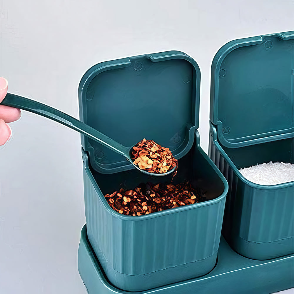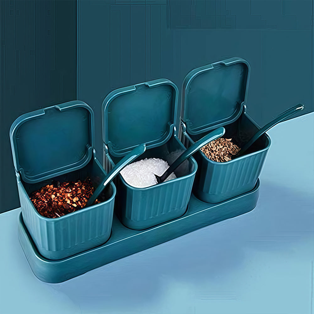 3-Piece Spice Set: Includes 3 jars with lids, 3 spoons, and 1 tray.