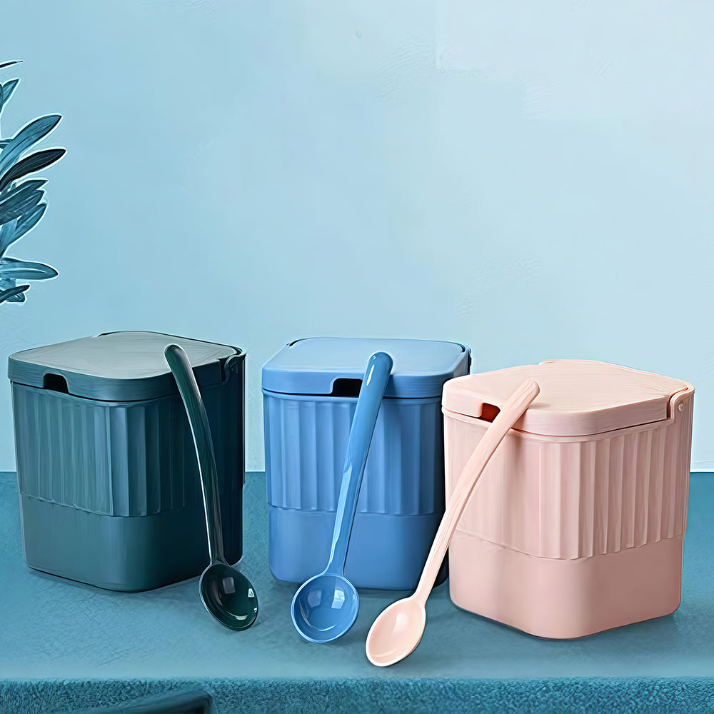 Keep your kitchen tidy and stylish with this 3-piece pink spice jar set. Each food-grade plastic container includes a matching spoon and sits neatly on a non-slip removable tray. Perfect for storing salt, sugar, pepper, or other seasonings. Ideal for home kitchens, dining tables, and countertop organization.